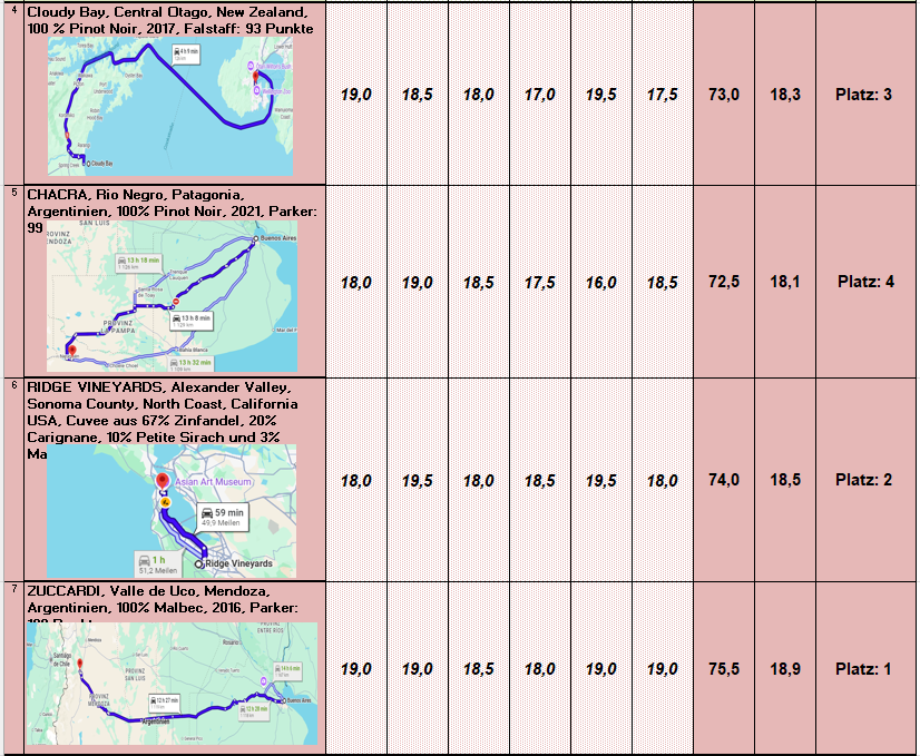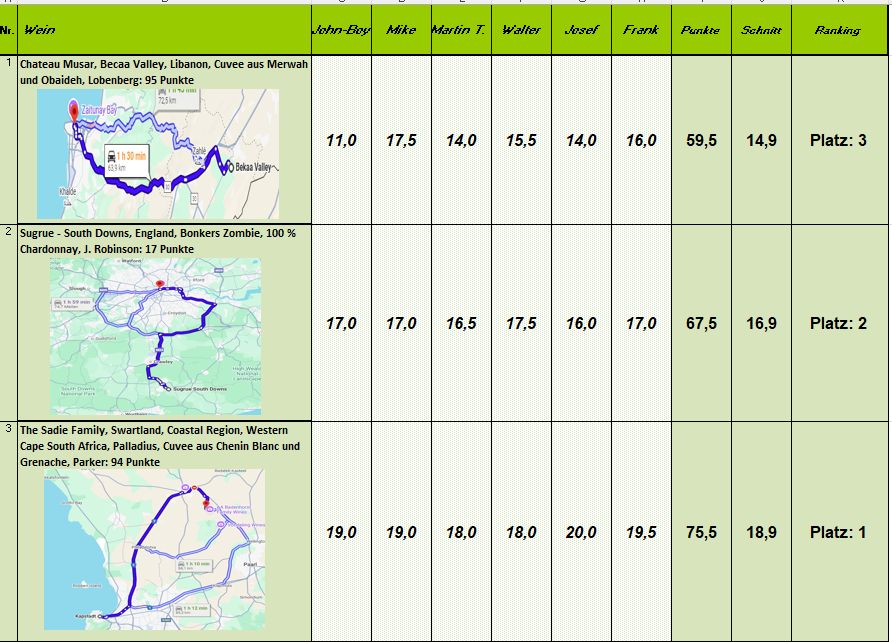 Hier noch das Ranking der Weine: